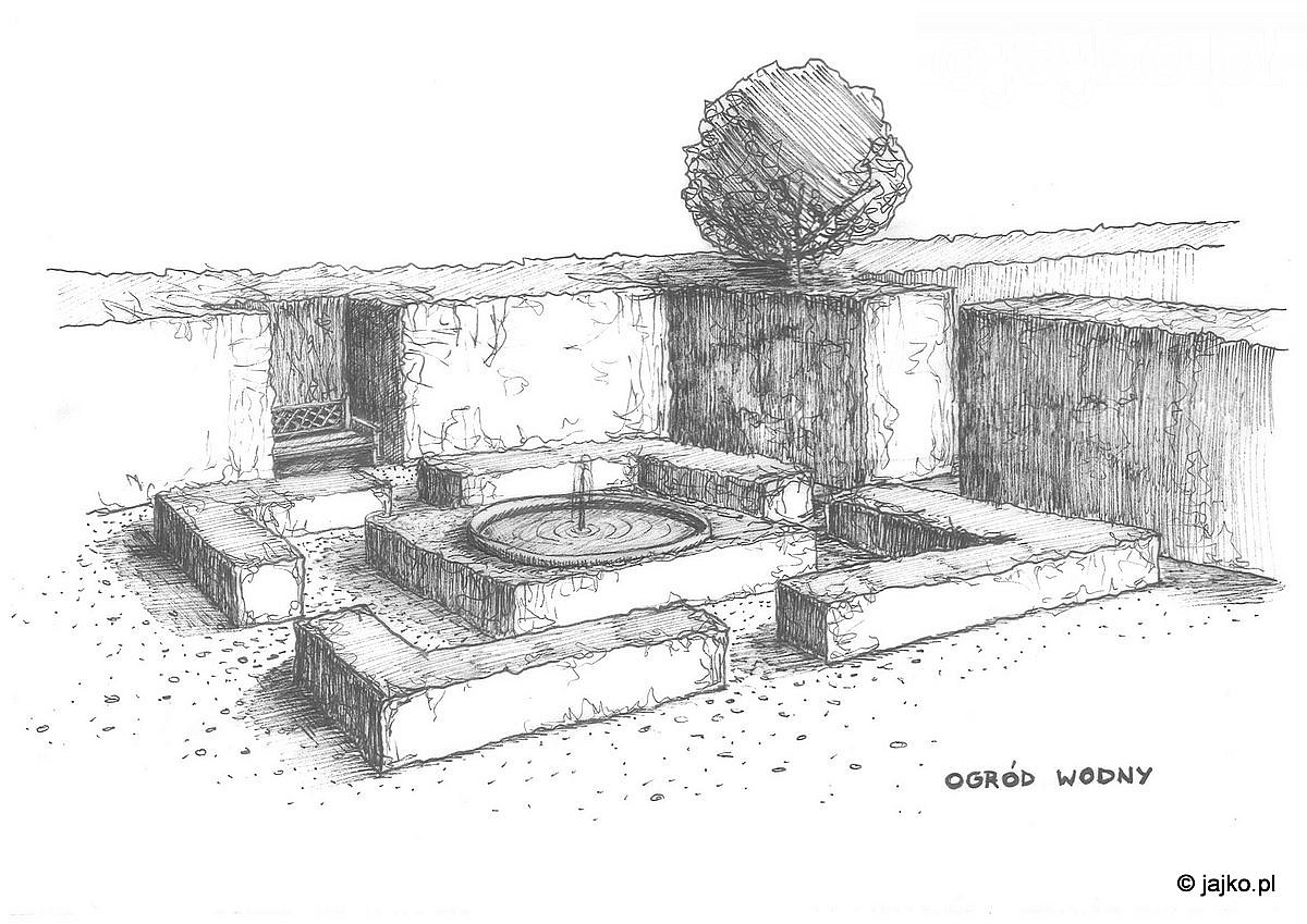 Z boków domu powstały wydzielone ogrody potraktowane w sposób bardziej formalny. Mały ogród wodny, z okrągłą fontanną i strzyżonymi bukszpanowymi nawiązuje do ogrodów barokowych, podobnie jak zlokalizowany obok ogród muz z niewielką sceną. To zlokalizowane obok reprezentacyjnego podjazdu miejsce jest oficjalnym ogrodowym salonem, miejscem w którym mają odbywać się przyjęcia.