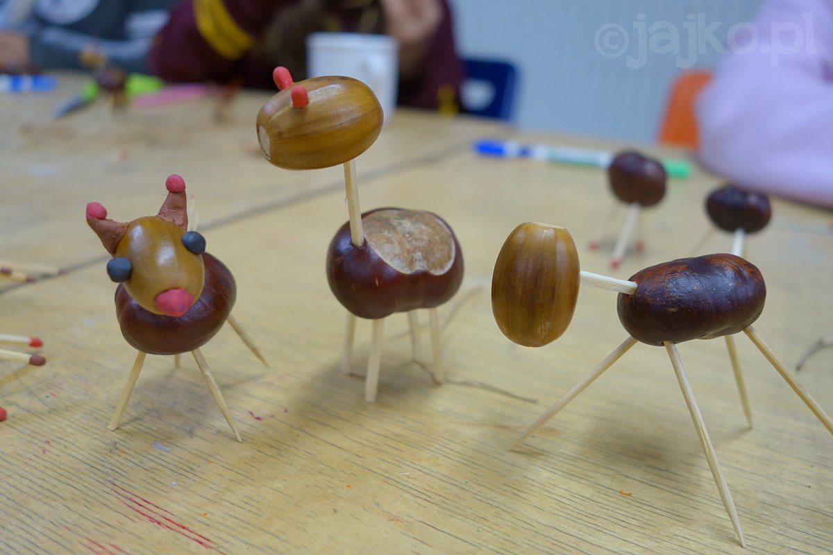 Staroświecka zabawa z użyciem kasztanów i żolędzi zaludniła Pracownię zastępem fantazyjnych stworzeń.