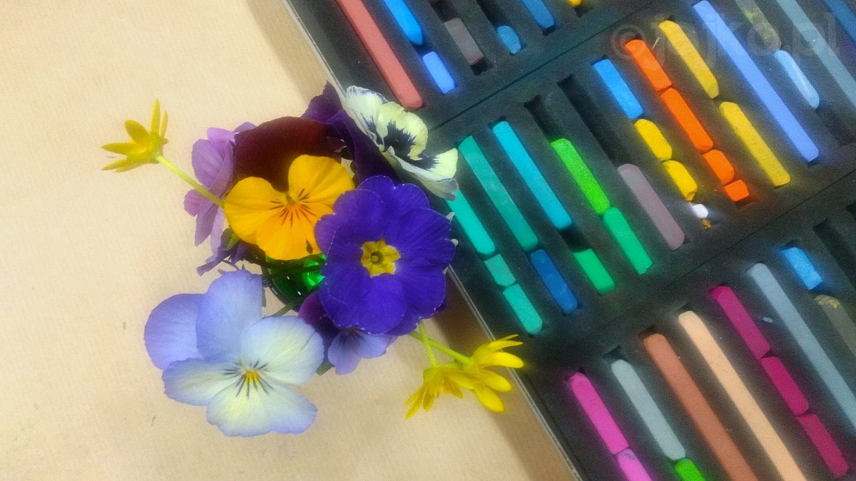 W końcu słońce zaświeciło i niezwłocznie rozkwitły kwiaty którym nie mogliśmy się oprzeć - szafirki, tulipany, pierwiosnki i bratki uwieczniliśmy akwaretą, pastelami i gwaszem.