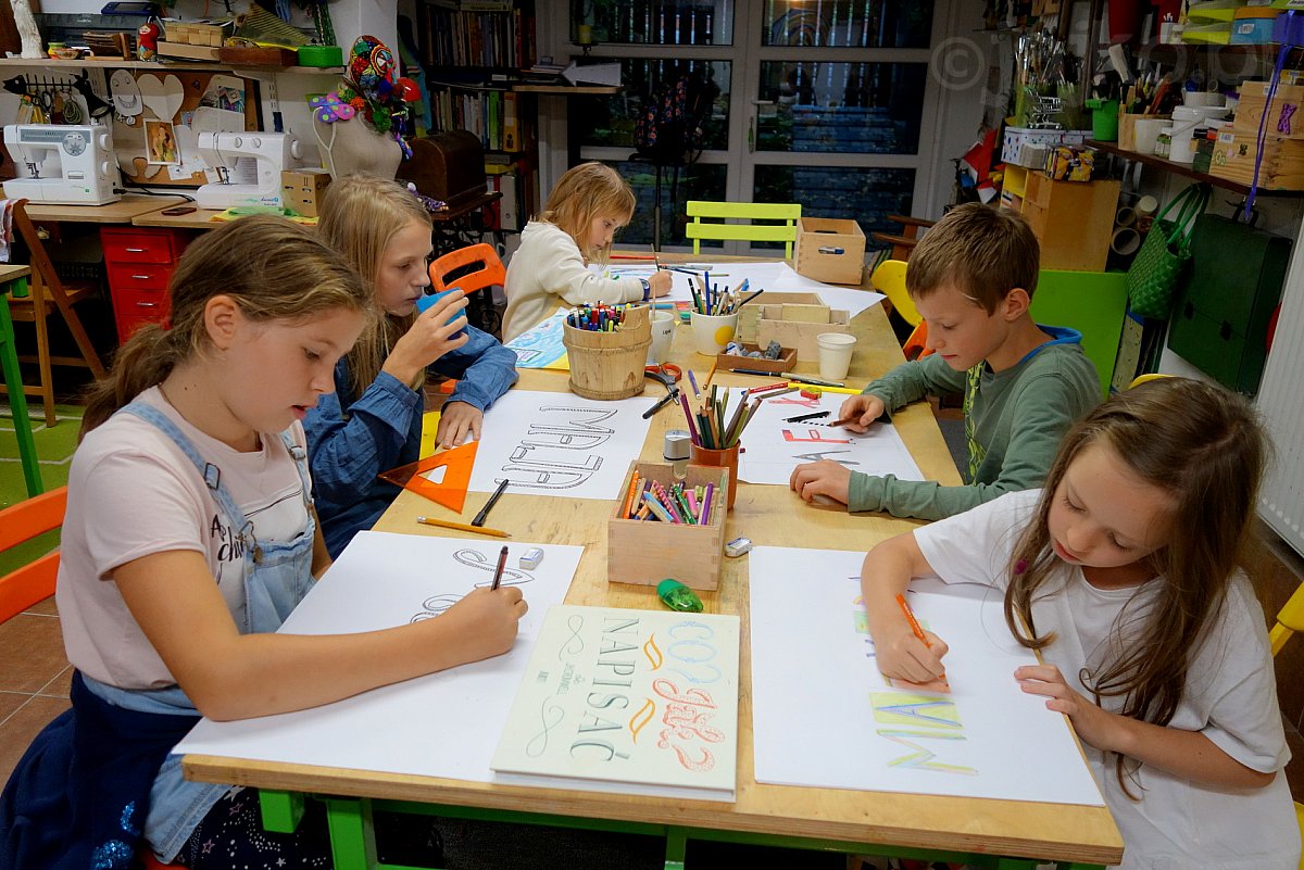 Na pierwszych po wakacjach zajęciach zgłębialiśmy ukryte możliwości liter. Projektowaliśmy własne czcionki, przedstawialiśmy litery w trójwymiarze, jako znak graficzny i jako przestrzeń dekoracyjną.