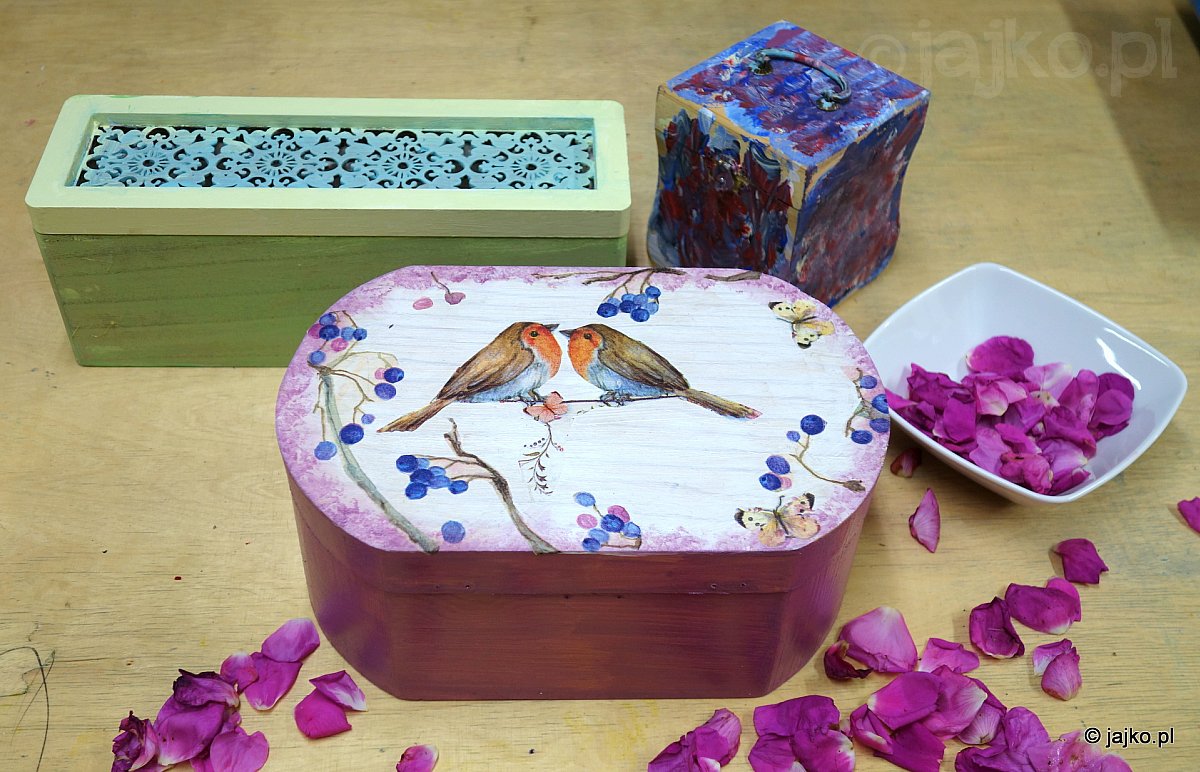 Na wakacyjne skarby i  nie tylko - pudła, pudełka i pudełeczka malowane i ozdabiane techniką decoupage'u.
