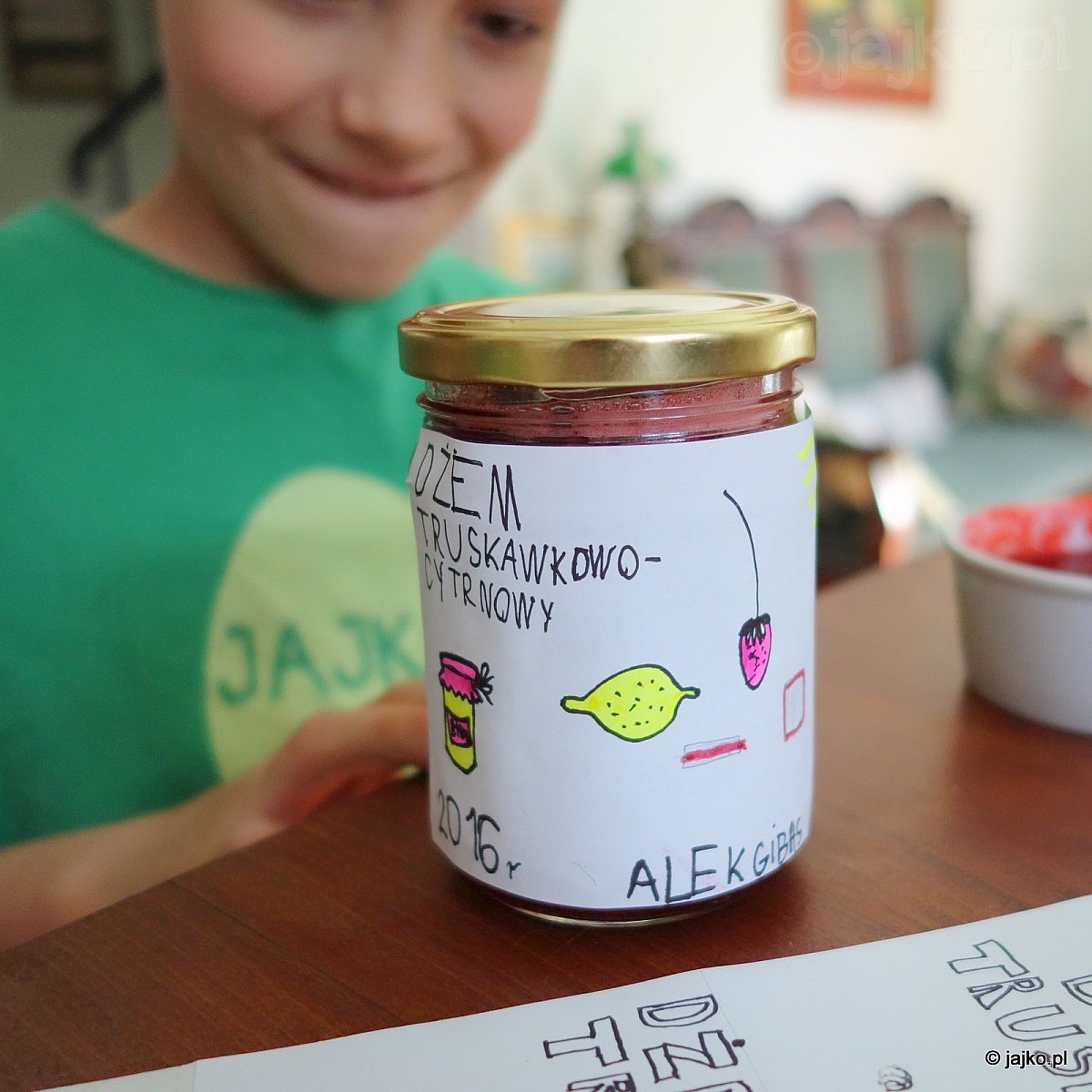 Ostatnie zajęcia w tym roku szkolnym były naprawdę pyszne! Zrobiliśmy dżem truskawkowy, ale nie ot, taki sobie, tylko ze specjalnymi dodatkami - skórką cytryny, płatkami róż, a nawet z własnoręcznie zbieranym agrestem. Kiedy dżemy powoli pyrkały na ogniu powstały piękne, autorskie etykiety na słoiki. W końcowej degustacji jednogłośnie wygrał Dżem z Agrestem Maksia.
