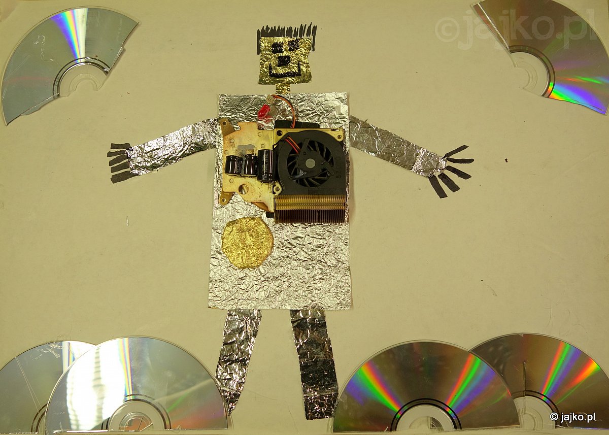 Ekologicznie i recycklingowo, a jak zawsze twórczo tworzyliśmy kolaże. Nakrętki i podkładki, elektroniczne podzespoły i resztki wełny, płyty CD i ścinki tkanin, plakaty i sreberka od cukierków - stosy śmietnikowych skarbów przemieniły się w DZIEŁA.