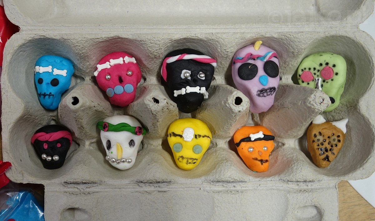 Czaszki i kości były tematem naszych plastycznych zainteresowań w ostatnich dniach.