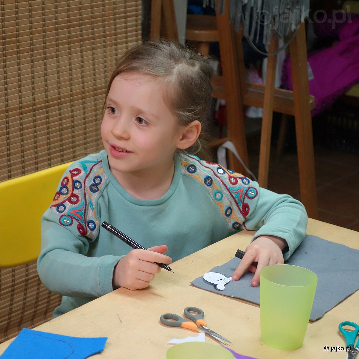 W przedwielkanocnym okresie z czułością pochylamy się nad naszym ulubionym tematem - Jajkiem. Tym razem szyliśmy dla nich ciepłe kapturki, żeby zbyt szybko nie stygły po ugotowaniu na miękko. Ciepłe filcowe czapeczki przybrały typowo wielkanocne kształty - kurek, kurczaczków, owieczek, zajączków i wiosennych kwiatów.