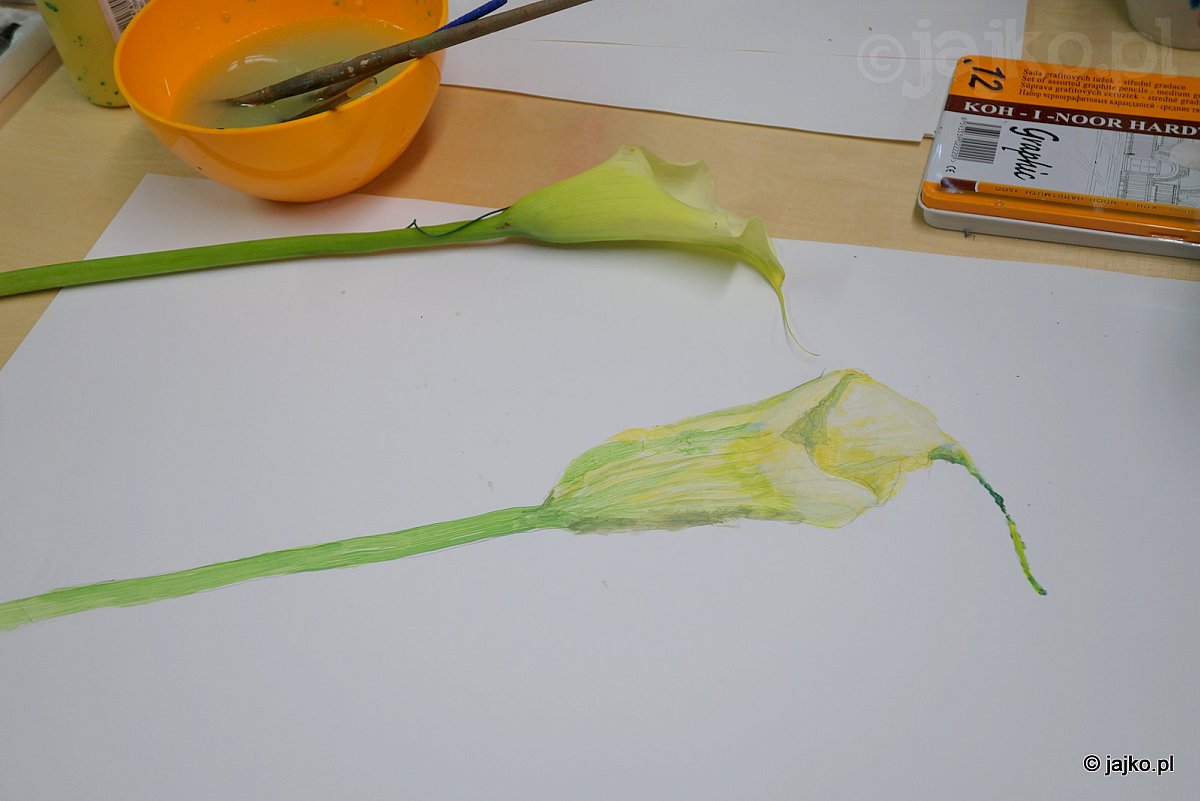 Na dzisiejszych zajęciach powiększona grupa malarsko rysunkowa machała pędzlami uwieczniając kwiaty umykającego nam lata.