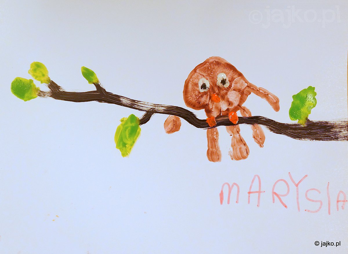 Małe łapki usmarowane kolorową farbą na papierze tajemniczo przemieniły się w motyle, kwiaty i ptaki.