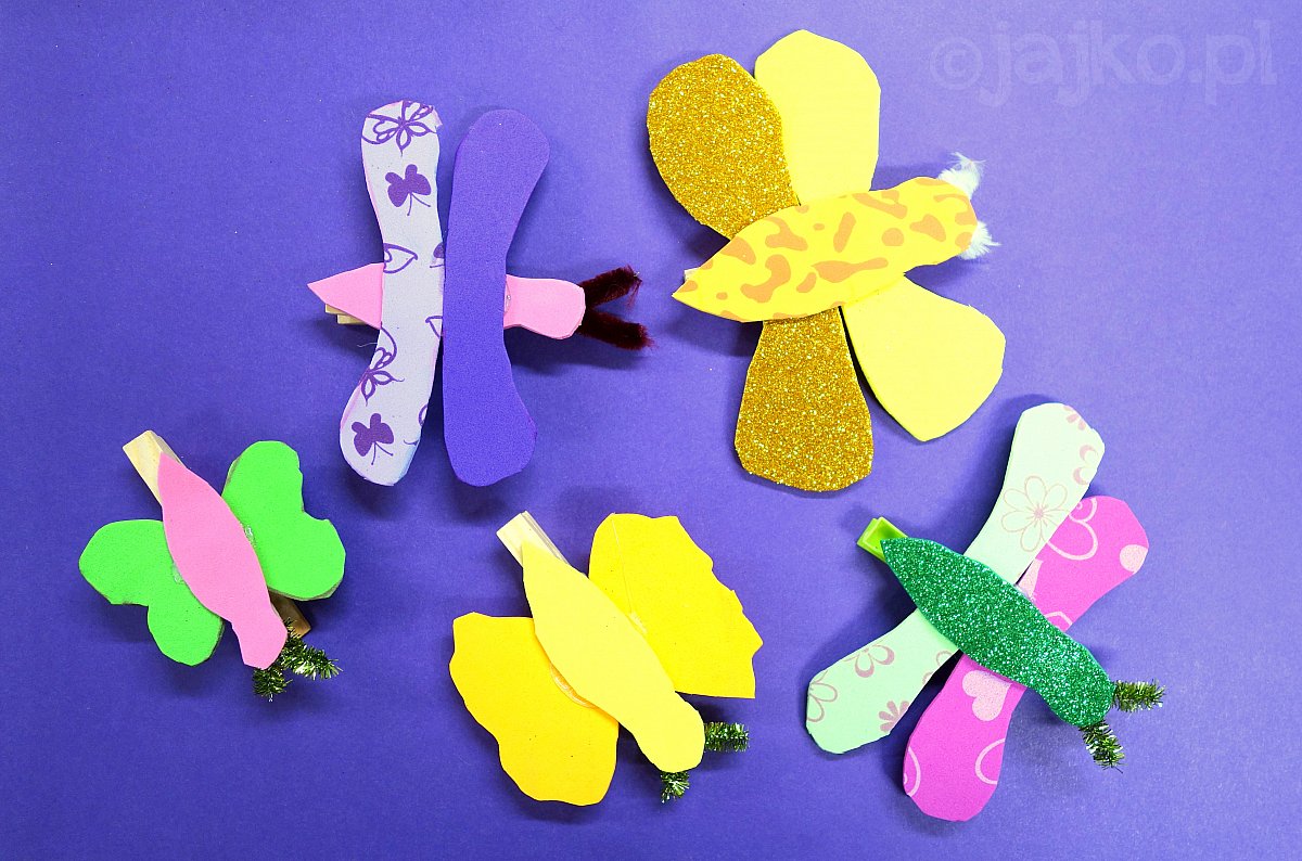 Kolorowe motyle z pianki na klamerkach do prania - tak pełne życia że gotowe do odlotu z pracowni!