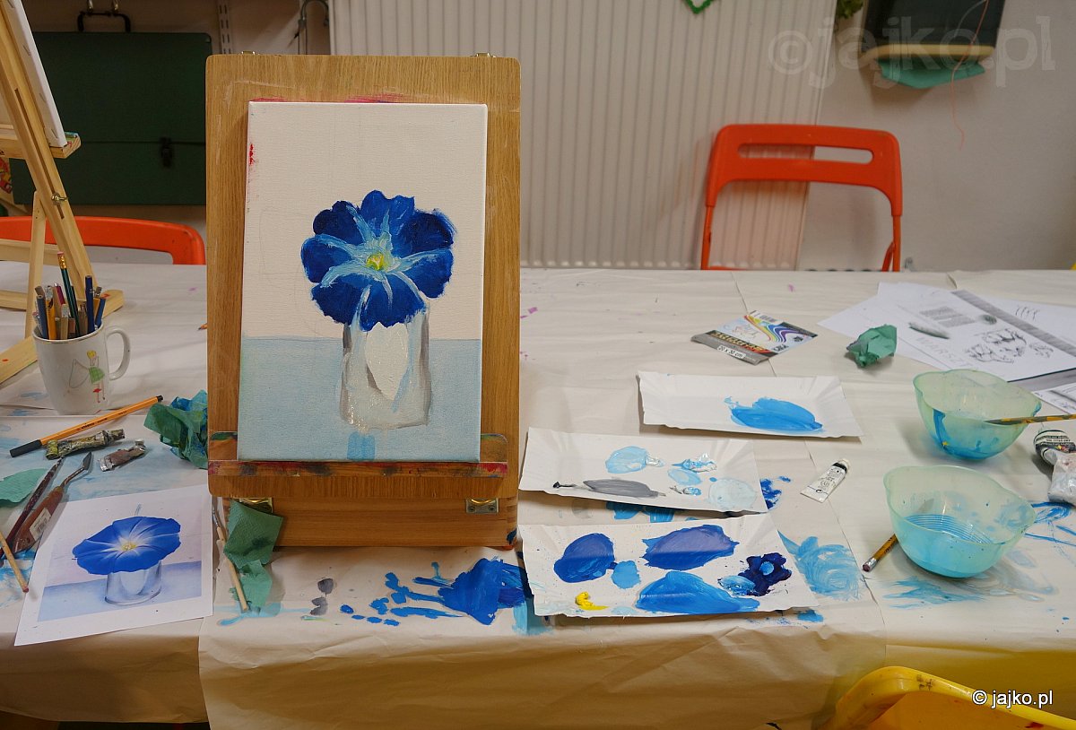 Przez cały miesiąc zajmowaliśmy się Królową Sztuk Plastycznych - techniką olejną. W oparach terpentyny zgłębialiśmy jej tajniki tworząc serię całkiem ciekawych płócien.