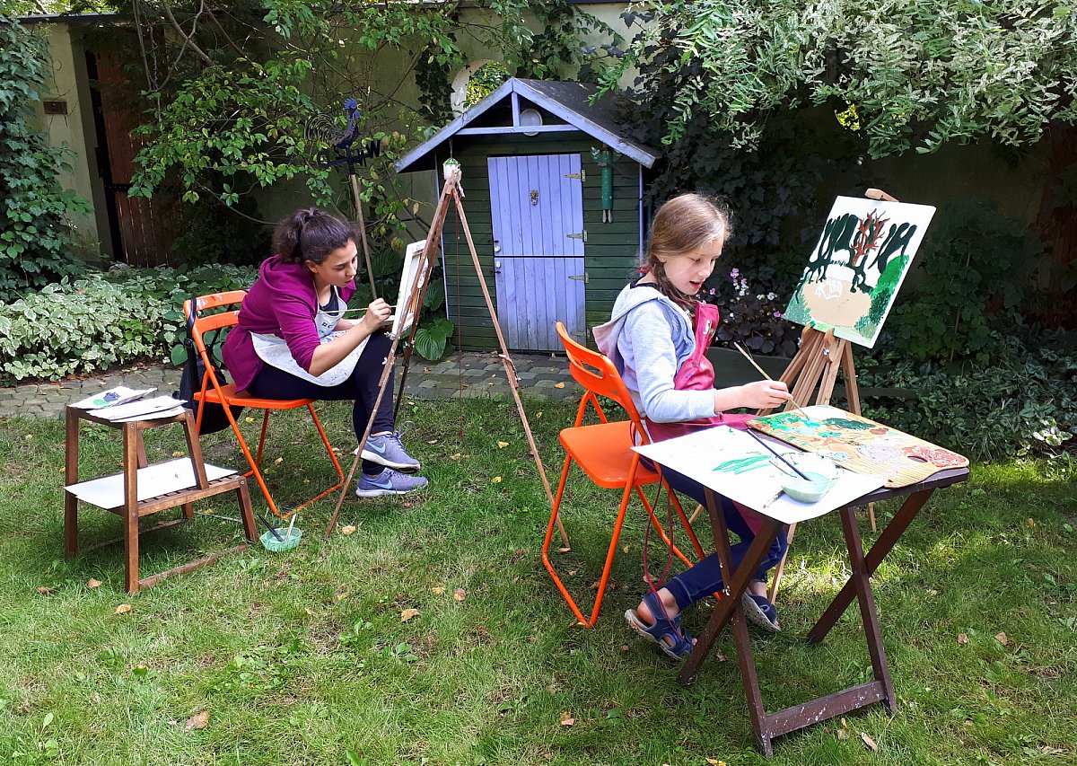 Trzeci dzień to tradycyjny plener malarski. W miłych okolicznościach przyrody, w ogrodzie, niespiesznie, powstały zarówno prace inspirowane otoczeniem, jak i zupełnie fantastyczne wyobrażenia.
