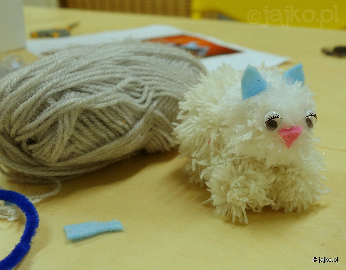 Dla najmłodszych uczestników tym razem zajęcia na specjalne życzenie - pomponowe stworki. Pająk, kotki czy owieczka, nieważny rodzaj zwierzaka -  pompony same w sobie nieodmiennie wywołują radość.
