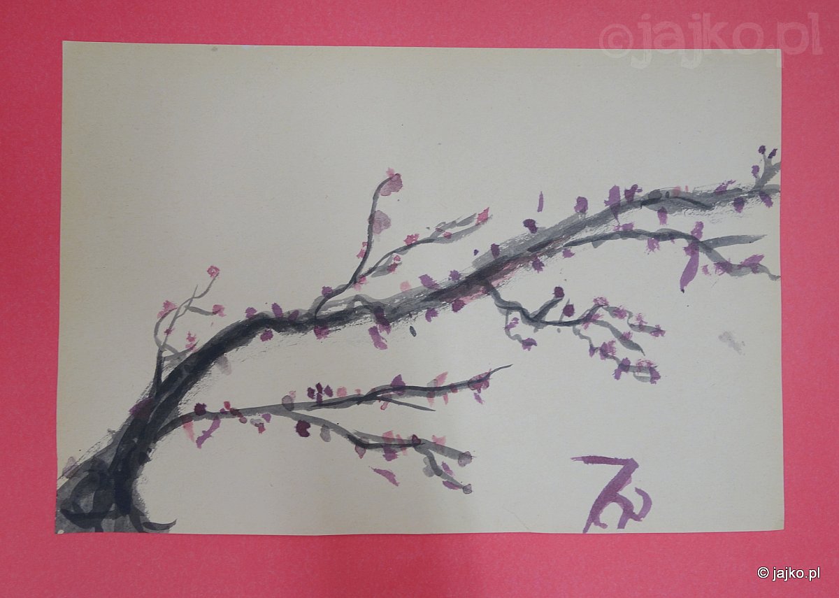 Zakwitły już ozdobne wiśnie! Tak jak w Japonii, sącząc zieloną herbatę obchodziliśmy zatem ich święto - hanami sakura. Ich zjawiskowe piękno utrwalaliśmy tradycyjną techniką - począwszy od mozolnego ucierania pałeczek tuszu na kamieniu po pełne skupienia wodzenie pędzlem po bibule. Gdzieniegdzie spośród wiśni wyłoniły się też smoki.