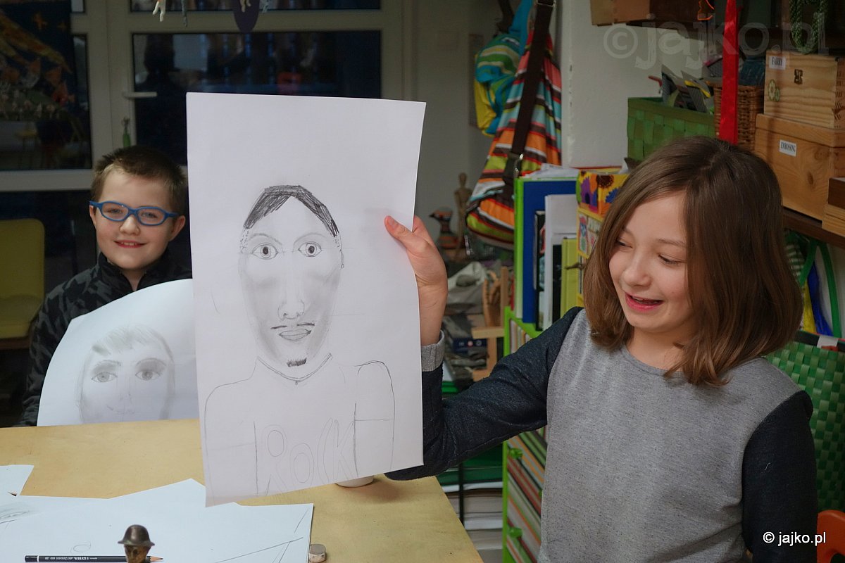 Po szkicach sylwetki nadszedł w końcu czas na rysunek twarzy. Do mistrzowskich portretów jeszcze długa droga, ale póki co anonimowe postacie nabrały charakteru a nawet osobowości.