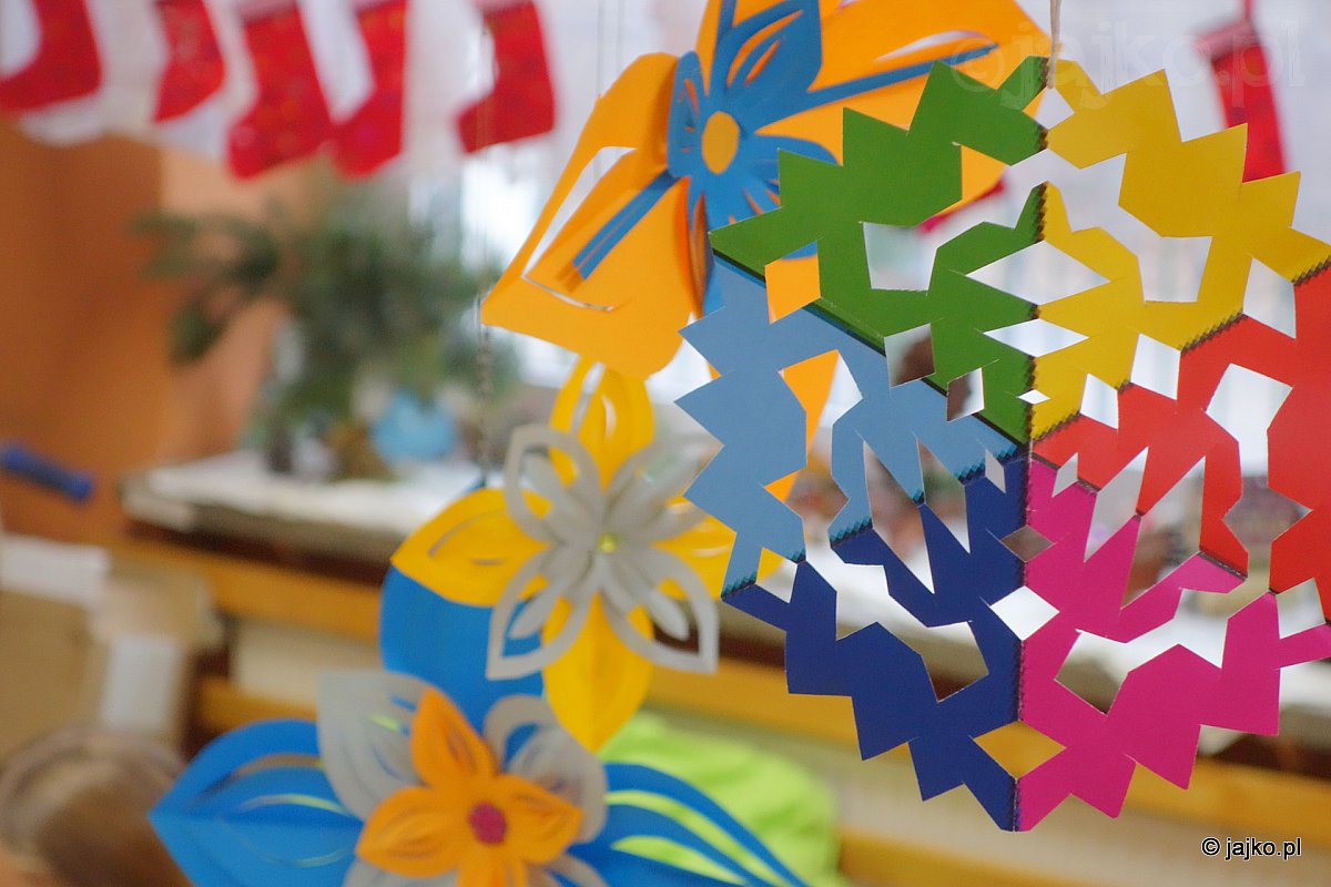 Na dzisiejszych świątecznych warsztatach w falenickim zespole szkół  na Poezji zajęliśmy się nieco zapomnianą sztuką papieru. Robiliśmy retro ozdoby wycinane z barwnych arkuszy - gwiazdy, kwiaty, łańcuchy, pawie oczka i renifery.