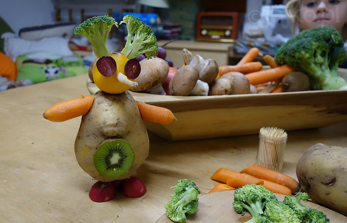 Z wielkich ziemniaków, marchewek, rzodkiewek i masy innych jesiennych warzyw i owoców w mngnieniu oka powstały fajne stworki.