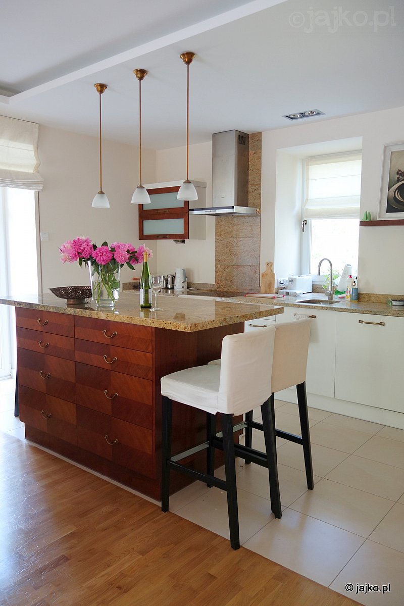 Przebudowane wnętrza willi w Aninie otrzymały nowy wystrój - połączenie klasycznego szyku i współczesnymi wykończenia. Użyto tylko materiałów najwyższej klasy i w nienagannym guście - blaty z granitu o bogatym rysunku, ciekawy fornir na kuchennych meblach, piękne jesionowe podłogi, szlachetne gresy w holu i ekskluzywna stolarka drzwiowa. Wszystko to zapewnia wrażenie luksusu, zwłaszcza uzupełnione o kilka antyków, parę ciekawych mebli o orientalnej proweniencji i masę rodzinnych pamiątek. Końcowy efekt to spokojna elegancja pozbawiona blichtru - idealne miejsce po prostu do życia.